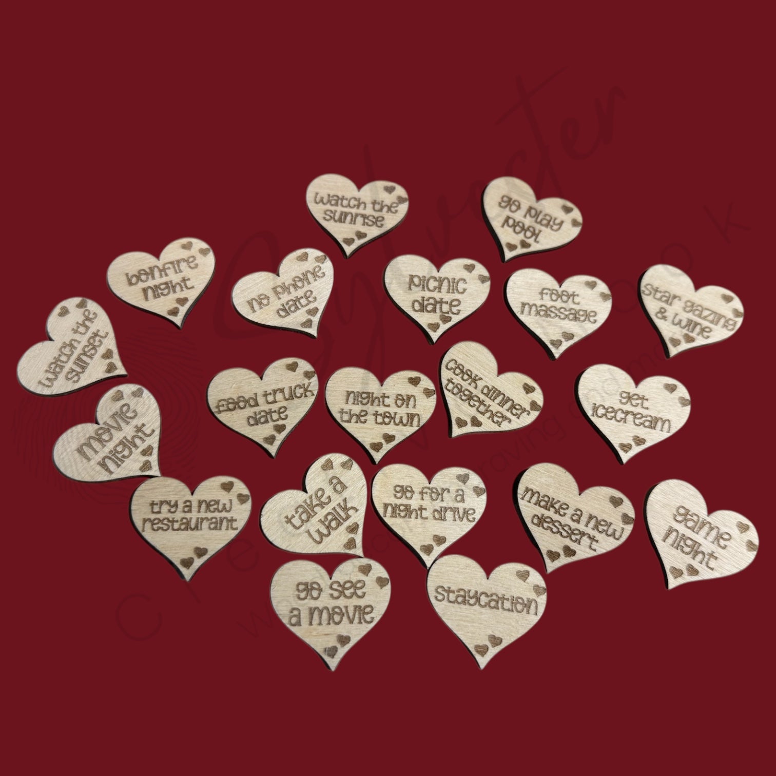 Date Night Token 10oz Glass Jar With Bamboo Lid Is the perfect gift to add some excitement to date nights! Select your token for a special idea for every date night. It comes with 20 wooden, date night tokens.