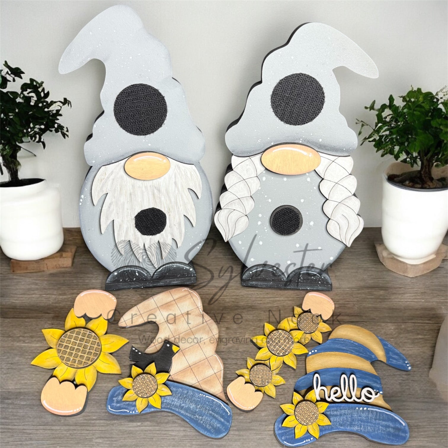 Introducing the ultimate home decor duo - our Gnome interchangeable shelf sitter pair! With these adorable and customizable gnomes, you'll have the perfect touch of charm for any season. A must-have for any quirky home. (Trust us, your shelves will thank you.)