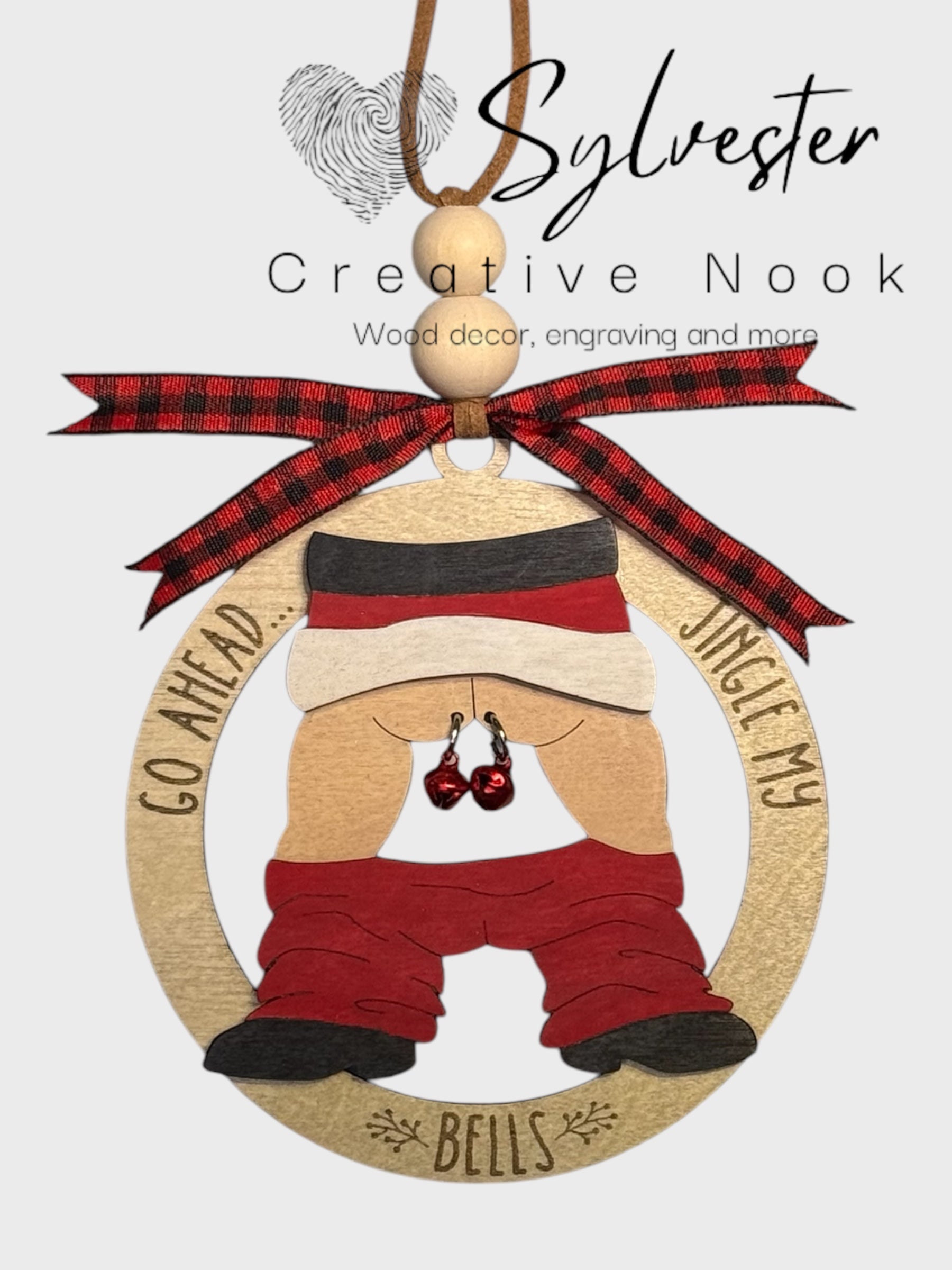 Get into the holiday spirit with our Go Ahead Jingle My Bells Ornament! Add a unique touch to your tree or give it as a playful gift to your loved ones. This 4 inch, 2 layered wooden ornament is sure to bring a smile and some laughter to your holiday celebrations. Happy jingling! Ho ho ho!