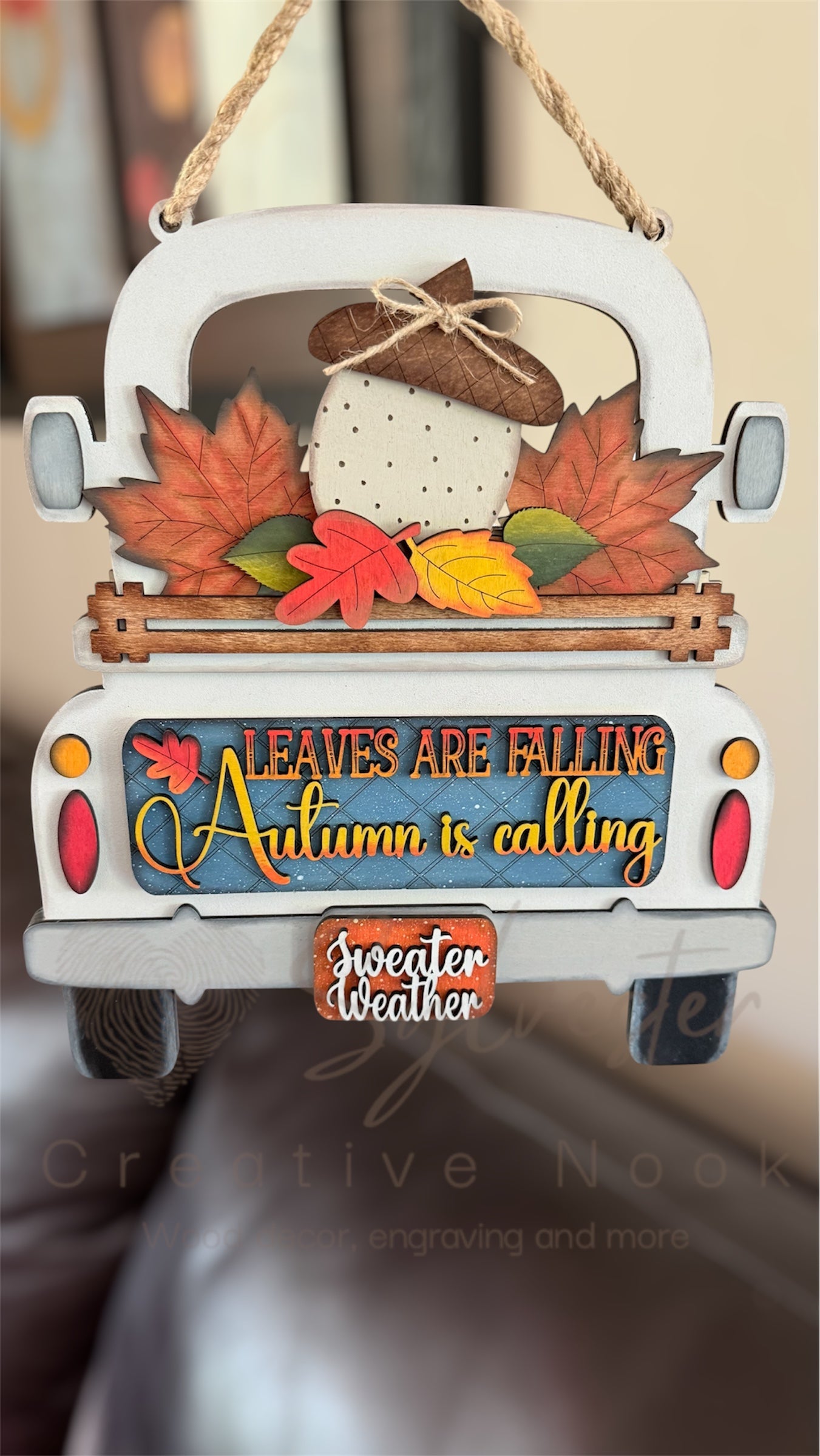 "Bring a touch of charm to your decor with our hand painted interchangeable hanging truck. Say goodbye to clutter and hello to convenience with multiple insert options for any occasion. Choose between a black or white truck with your choice of one insert for $50.00 and add extra inserts for only $25.00 each. Perfect for those who want to switch things up!"