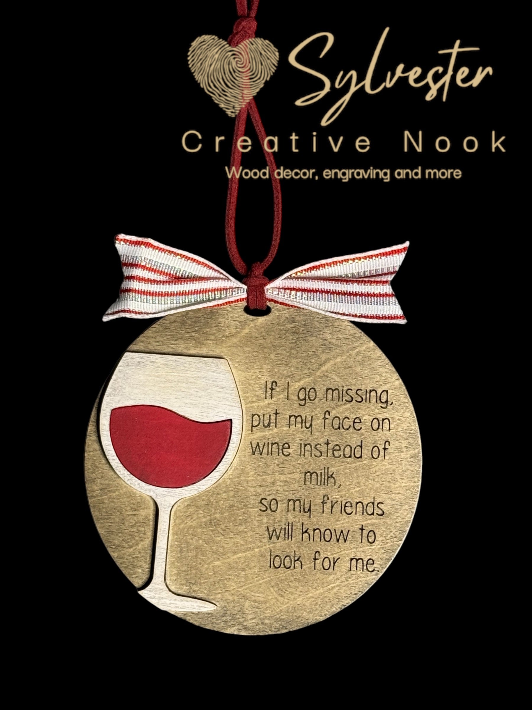 If I go missing put my face on a bottle of wine instead of milk ornament lapproximate size: 3.75 inch let's be real, if I go missing, who's really gonna be searching for me on a milk carton? This hilarious ornament is the perfect way to bring a little humor to any holiday decor. Plus, at 3.75 inches, it's the perfect size to fit anywhere on your tree.