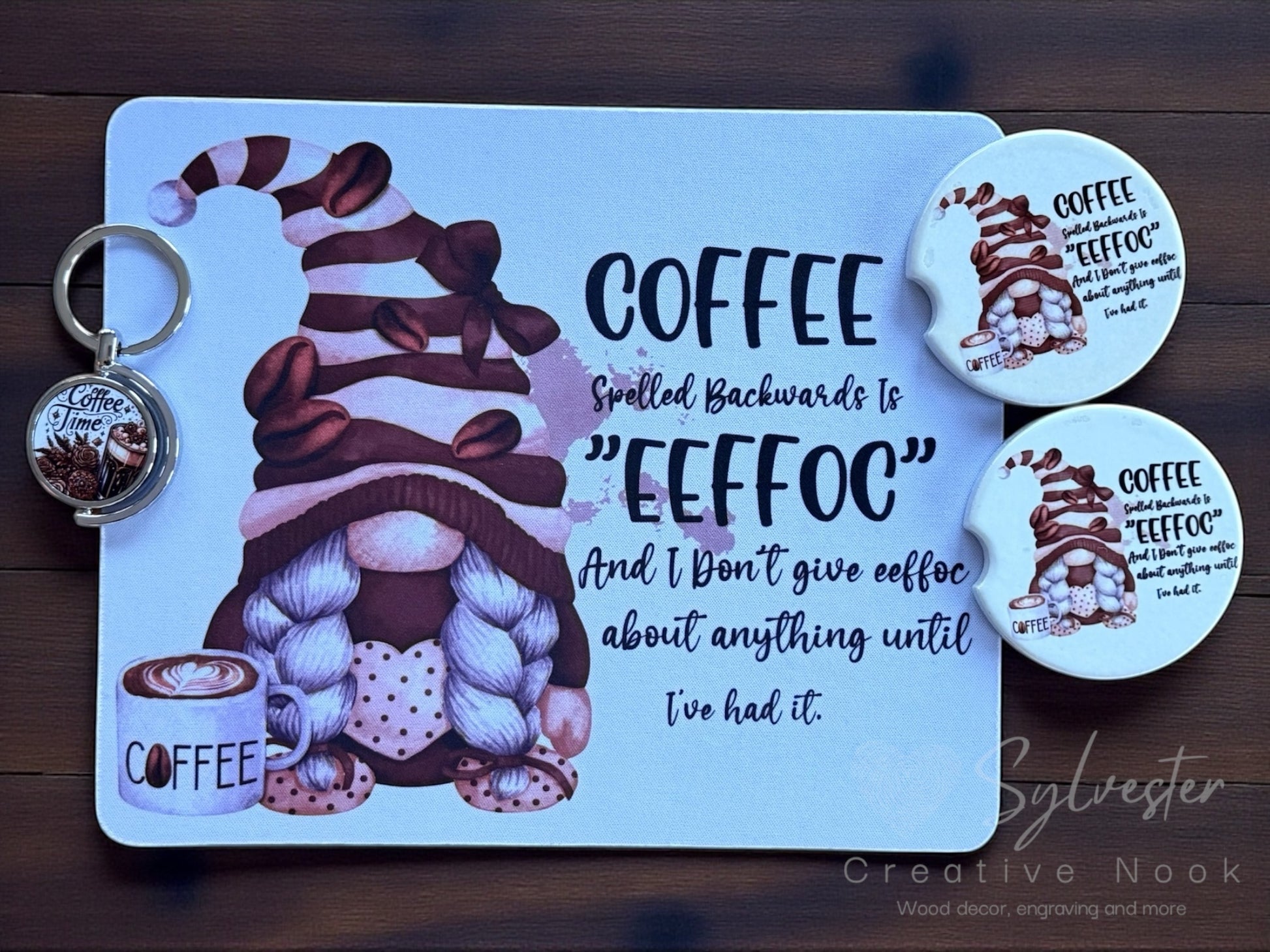 Experience the ultimate convenience and style with our Mouse Pad Car Coaster and Keychain Bundle! Save money while getting the perfect gift set. The ceramic coasters are easy to clean, and the swivel double-sided keychain adds a touch of elegance. The 8.5 inch x 6 inch mouse pad completes the bundle for a practical and stylish addition to your workspace.